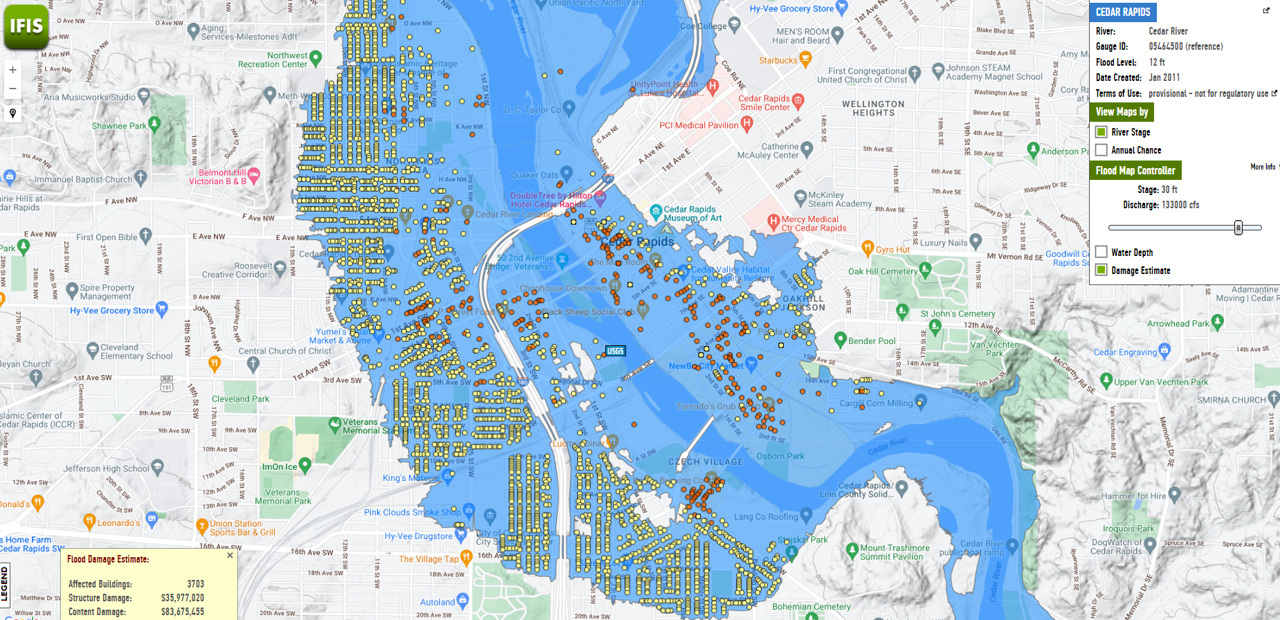 Inundation maps for dozens of Iowa communities are available on the Iowa Flood Information System. Maps are continually expanded for communities across Iowa.